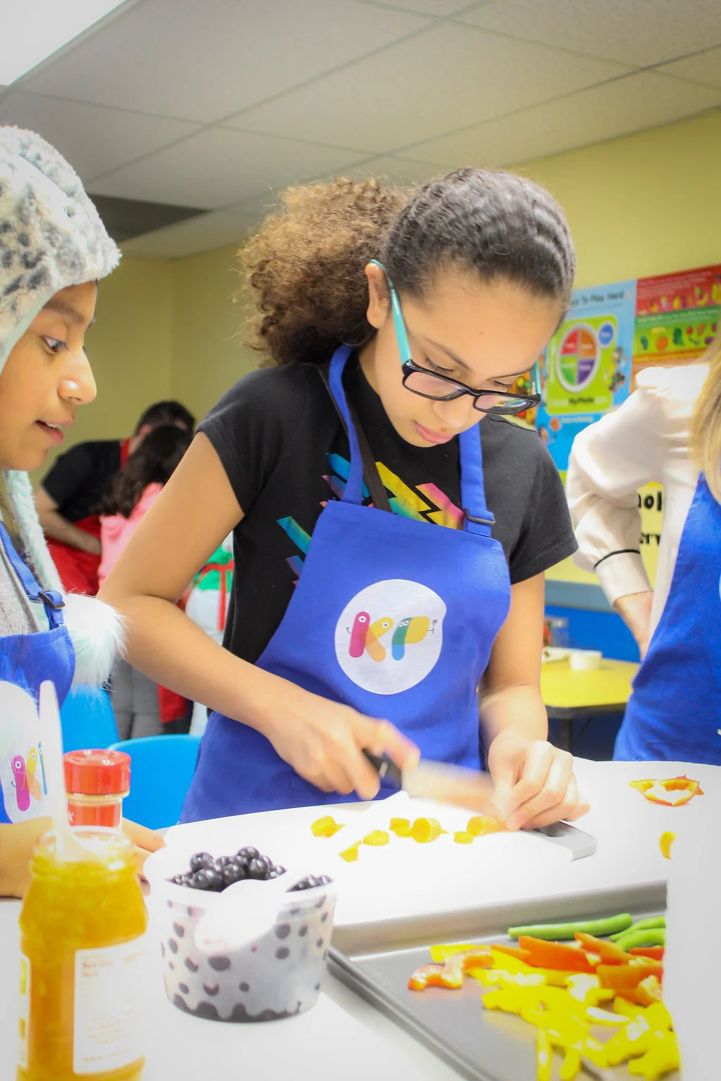 They served their sauce atop pulled chicken sandwich and roasted some vegetables to go with them. They're still working on their knife skills, and we can see them improving each week!